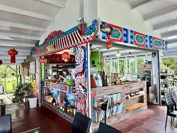 你看他們的吧台區,是用布袋戲台來裝飾的,真的非常特別,讓人印象深刻!用餐區也很大,有四人到十人的桌子,不管是自己來吃飯還是朋友聚餐、下午茶都很適合。