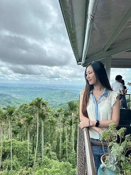 坐在這裡啊,可以一百八十度欣賞山景,天氣好的時候感覺更好。園區的景色可以俯瞰嘉南平原白天和晚上的美景,而且天氣好的話,聽說連澎湖花火節的煙火都看得到耶!