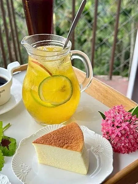 還有【水果茶、英國女士cake】,那個起司蛋糕口感綿密,乳酪香氣很濃郁,配咖啡或冰涼的水果茶都很對味。