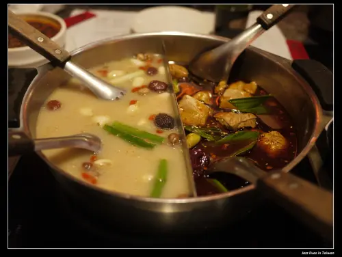 我們叫的是正宗一鴛鴦鍋,還真的第一次看到湯底放了好多的料,
