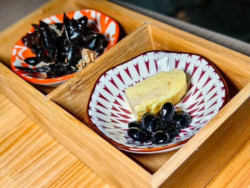 小菜的部分,那個玉子燒、黑豆、木耳感覺好像是當天都會有的基本配備耶。也可以自己加一顆半熟蛋喔。