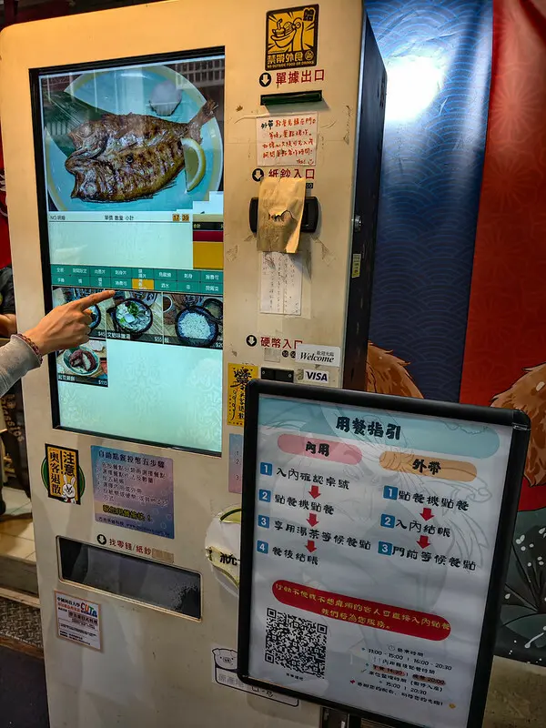 胖夫妻日式料理就在中國科技大學門口那邊。所以來吃飯的客人呢,大多都是附近的學生或是住戶。店裡面位子其實沒有很多,所以很多人會選擇外帶回家吃。不過店裡的環境感覺還蠻舒適的啦。點餐是可以用點餐機點,但是結帳就不是用機器喔,是要吃完飯後再到櫃檯結帳的。