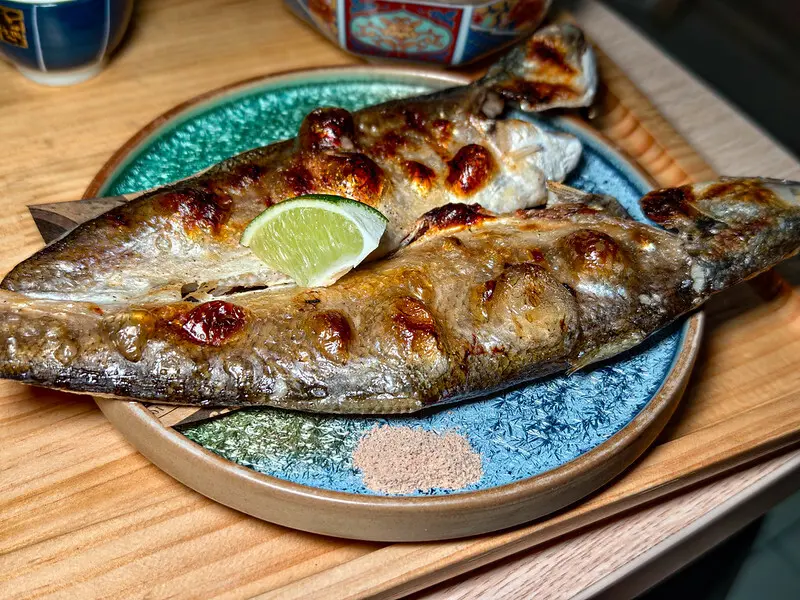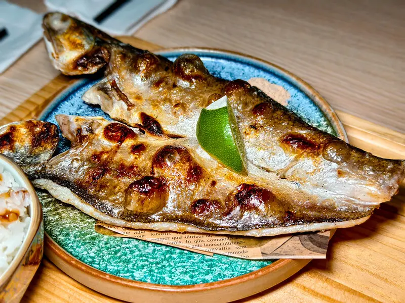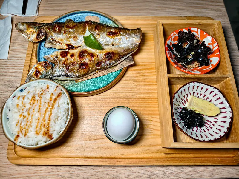 還點了自漬午魚定食,午魚烤得蠻好的耶,在台灣吃午魚是很美味的,烤的這種做法也很符合台灣人的口味。台灣俗語不是說「一午、二鯧、三鮸、四加納」嗎,可見午魚多受歡迎。