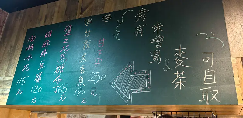 這裡的菜單選項真的超多的,你想得到的日式料理幾乎都有耶。像是各種口味的丼飯、烏龍麵,還有生魚丼、壽司、烤物跟串燒。而且黑板上還會有特別的菜色可以點。