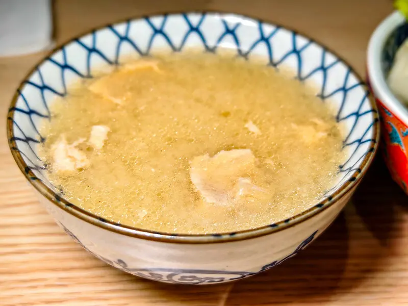 最貼心的就是這裡的味噌湯跟麥茶都可以自己裝,而且是免費喝到飽的喔。它的味噌湯裡面還有魚肉耶,喝起來蠻鮮美的。這點是不是超讚的。