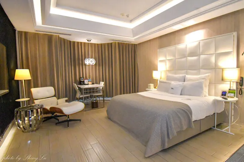 從外觀看,本來以為價格會跟五星飯店一樣貴,後來上官網看,其實真的不貴啦XD~純白色外觀簡約又大方,晚上的燈打下去,看起來更有質感了