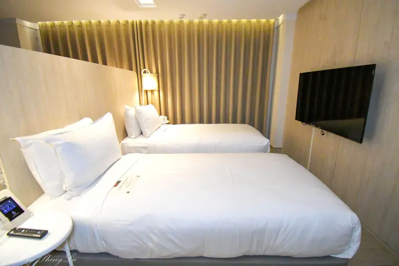 今天入住的是商務雙人房(兩小床)若跟朋友出玩、或同事出差,覺得睡同一張床很尷尬的話,可以預定這種二雙單人床,獨自睡一張床也比較自在