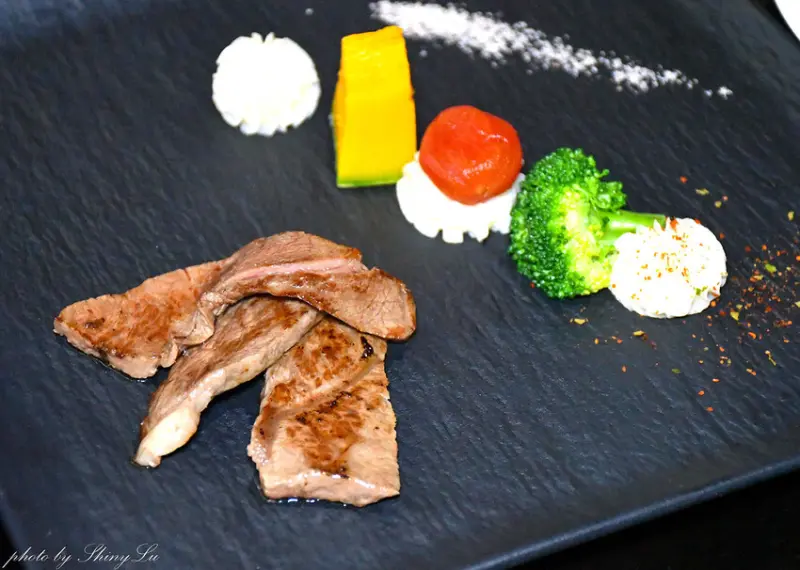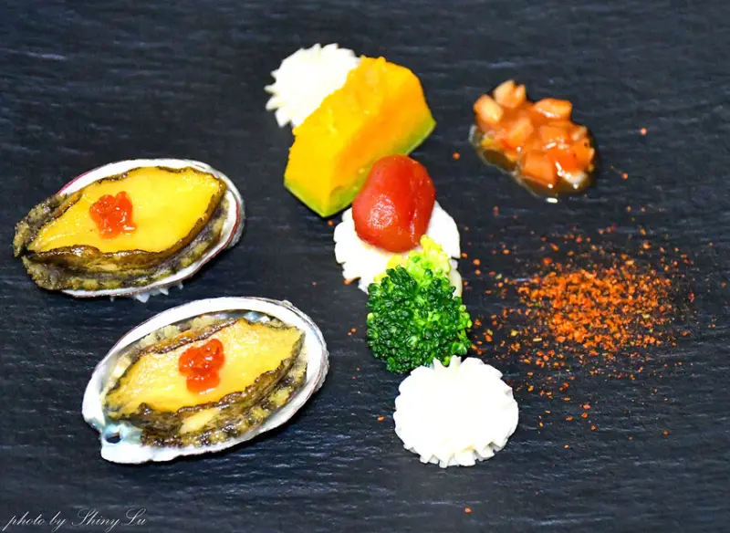 今天的主餐是牛排跟鮑魚,擺盤漂亮又精緻,牛肉很嫩不會柴,鮑魚很有Q度,整體口感相當美味
