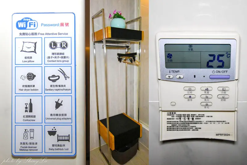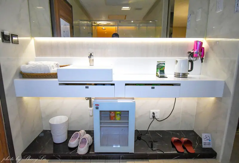 客房的備品很齊全,免費Mini Bar有茶包小點心,還有TESCOM吹風機、電水熱瓶、電冰箱(裡面的飲料可以喝)還有Panasonic除濕機