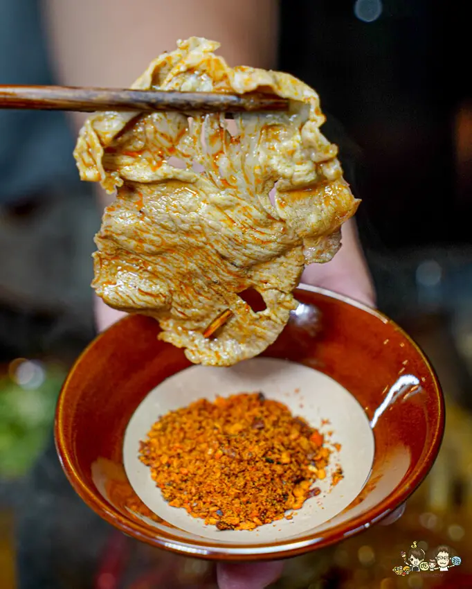 涮蔬菜、涮肉都很美味,可以沾上麻辣乾蝶粉就開胃