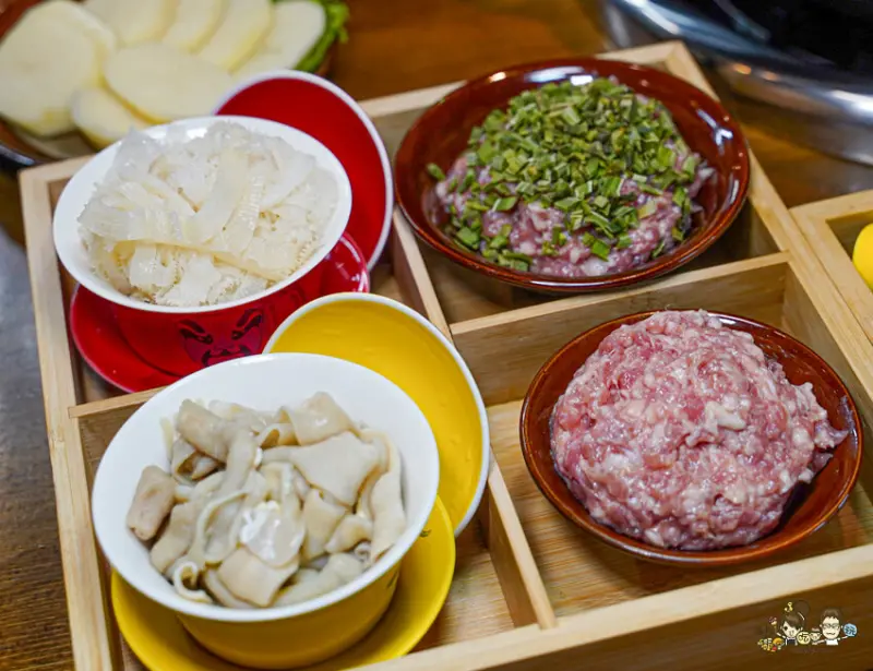 特色千層肚、叁庚半特色手工肉丸、特色貢菜肉丸、鴨腸