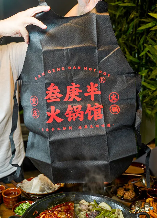 店家還會貼心提供一次性的圍裙,讓大口享用重慶老火鍋還不擔心用髒衣服
