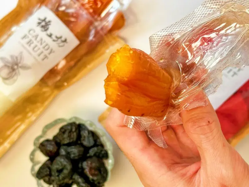 - 特色:酸甜微鹹,Q彈有嚼勁,傳統台灣蜜餞,帶濃郁古早味。