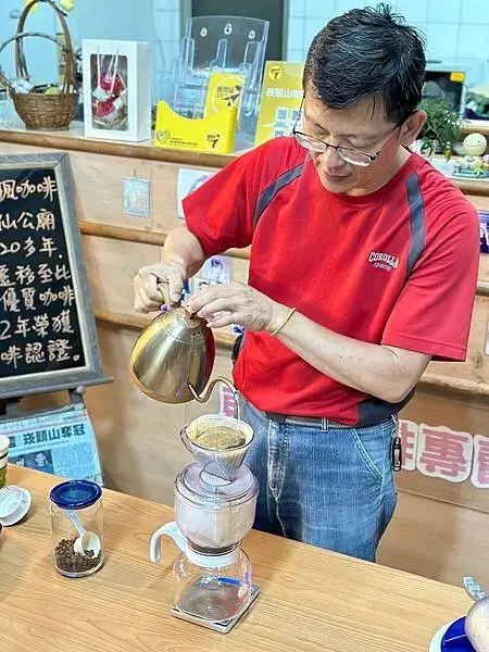 老闆人很親切,還會認真解說,甚至親自手沖咖啡請大家品嚐呢。