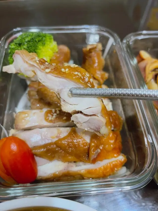 他們的四菜一湯,真的很用心捏,兼顧了配色跟營養。像這次貝大小姐跟瑞餚姐吃到的,就有日式照燒雞腿排,外皮刷上照燒醬,有淡淡的醬香,一點點鹹鹹的,肉質超軟嫩的!