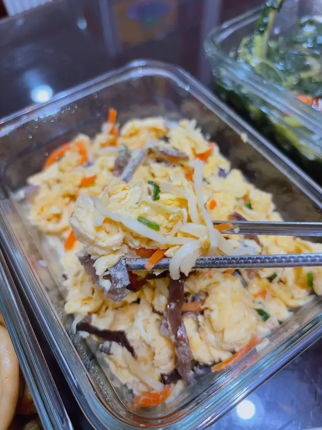 再來是筍香木須炒蛋,把竹筍、紅蘿蔔、黑木耳切絲,加上雞蛋跟青蔥一起炒,把每種食材的香味跟口感都炒出來了,聽說連小朋友都很愛吃喔!![]()