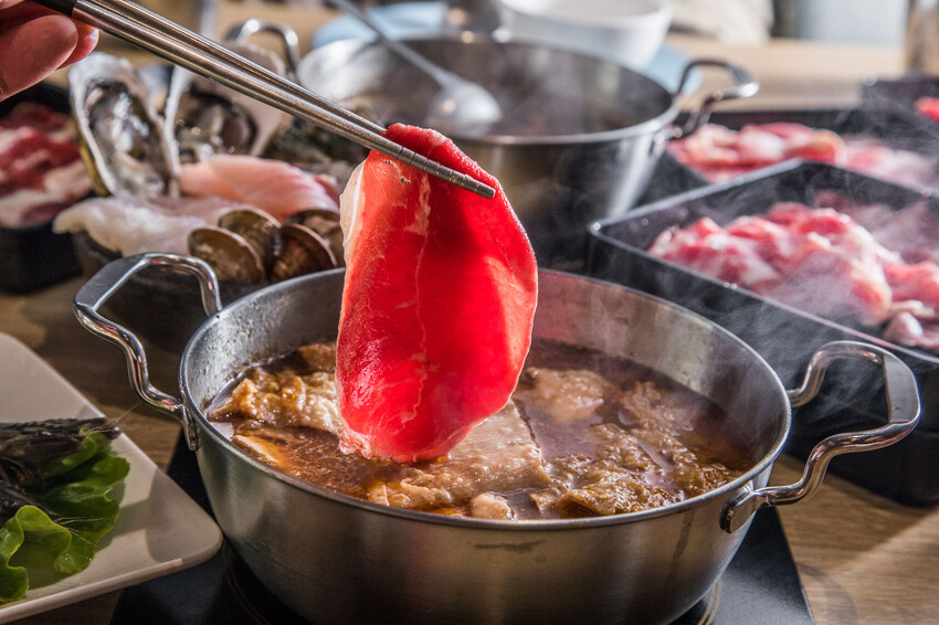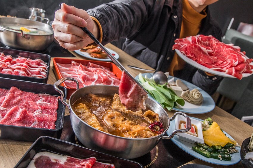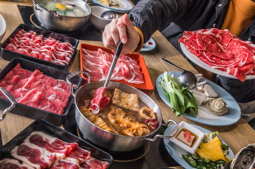 鬥牛士二鍋桃園食尚店的肉真的超強大的啦。光是最基本款,就有六種肉品讓你無限量吃到飽。有美國牛五花、紐西蘭霜降牛、梅花豬肉片、豬五花肉片、去骨雞腿肉、還有潤滑雞柳條。因為他們的肉切得比較厚,煮起來比較不用擔心會散掉,熟度也比較好控制喔。而且還是原肉現切的,棒呆了啦!