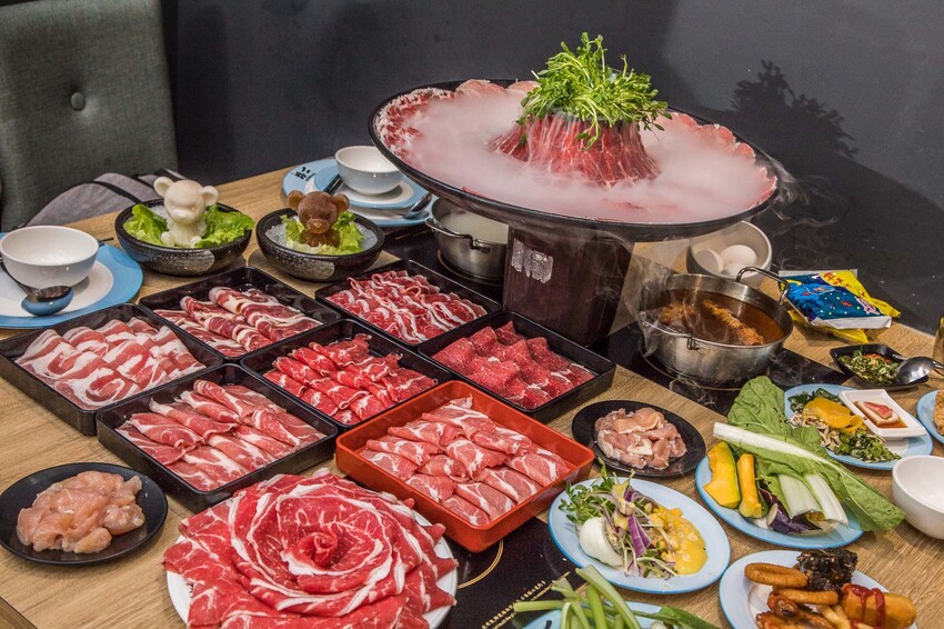 準備開吃啦!蛋寶這次吃的是628元的價位喔。加上從自助吧拿的餐點,擺到桌上整個滿滿滿的。對了,他們現在還有推出隱藏版的大仙肉盤喔。這個要有條件的,只要你四個人以上一起用餐,而且需至少提前一天打電話預約,最重要的來了,要在電話中說出通關密語:「鬥牛士二鍋好好吃喔😋」。就有機會獲得大仙肉盤喔!不過啊,這個是每日限量五盤啦,想吃手腳要快喔。