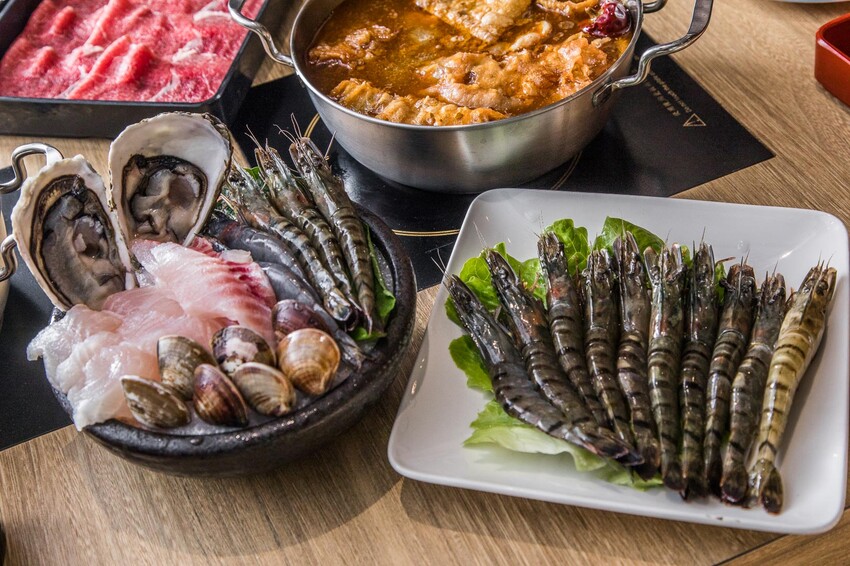 如果你想吃海鮮的話呢,鬥牛士二鍋桃園食尚店也有提供單點海鮮的選項喔。一盤大概一百到兩百元,算是相當划算的啦。
