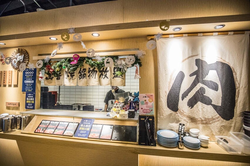 店裡的環境呢,鬥牛士二鍋桃園食尚店走的是一個日式風格。自助吧的區域在中間。蛋寶去的那天是平日,但就已經幾乎客滿了耶。假日就更不用說了啦,沒訂位真的會排隊排到天荒地老喔。這裡有一個很讚的地方,就是他們可以單人用餐耶,還貼心規劃了單人用餐的座位喔。誰說一個人不能吃爆吃到飽啦!