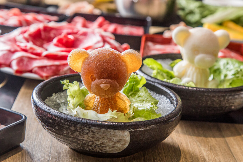 他們現在還有推出一個超可愛的活動喔,叫做【熊熊想吃鍋】。這個也是每日限定的,只有三十隻熊熊可以讓你選喔。有「壽喜燒熊」跟「牛奶熊」兩種。一樣要提前一天以上打電話預約,而且要在電話裡講通關密語:「熊熊想吃鍋」。這樣就有機會獲得一隻二鍋熊喔,有黑熊或白熊可以選。這個熊熊每天數量真的有限,送完就沒有了喔。