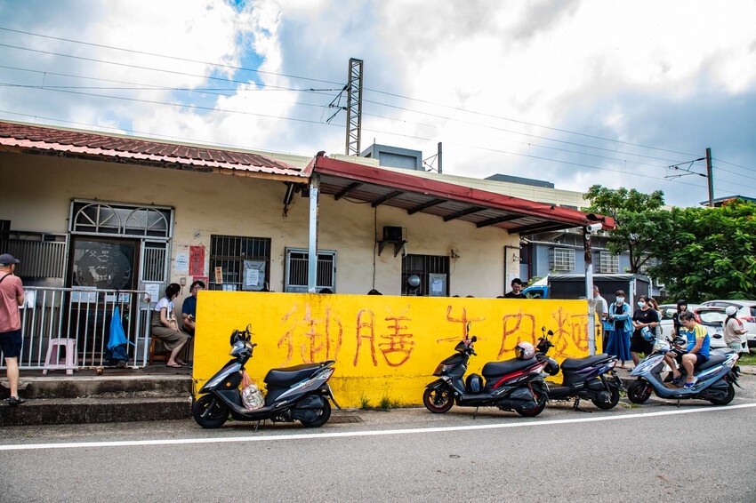 想吃真的要很拼啦,表定是早上十一點開門,我強烈建議你最好早上十一點就在門口Stand By,尤其是假日。我們這次十二點多到,大概就排了整整一個小時,遠遠看過去圍牆後面都是滿滿的人頭,超多人都在排隊。而且不只有在地人喔,不少人可是從外縣市專程跑來吃這一碗牛肉麵的。