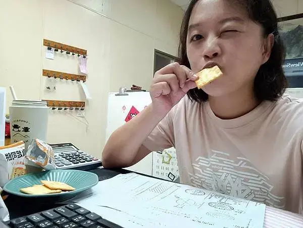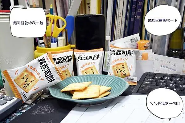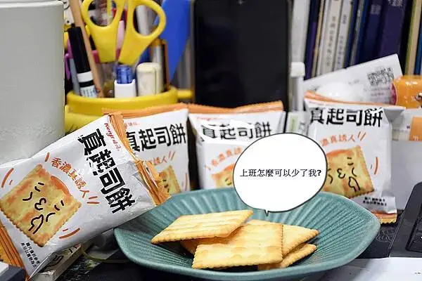 對我來說,在我認真工作的時候,這個餅乾真的是超重要的存在。每次我從抽屜裡拿出它的時候啊,同事們都會被香味吸引過來,想跟我分這個成分單純的起司餅乾 他們要分的才不是一片咧,是整包啦哈哈哈!