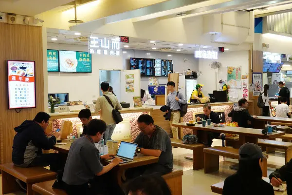 王山而熟成雞肉飯就藏在內湖區瑞光路的麗陽商場裡,在1樓洲子美食街內。搭捷運的話從港墘站2號出口走過來大約7分鐘,附近也有21、552、645、950、內科快線…等多路公車經過的「仁寶大樓」站牌,因為鄰近堤頂大道、開車來也很方便,商場還有立體停車場可以停。
