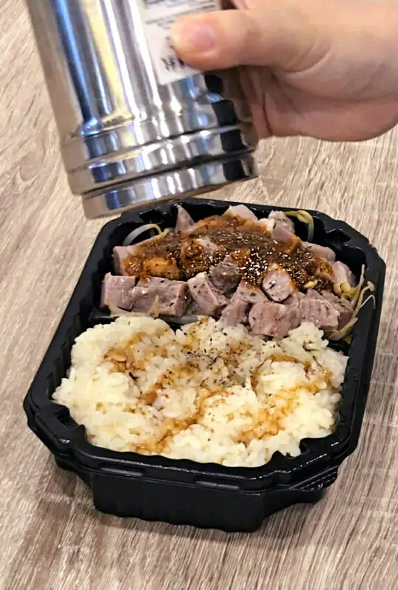 熟成雞肉飯或豚肉飯都可以選擇兩種口味,不吃辣的可選蔥油口味,愛吃辣的就選香辣口味!他們的蔥油是自己做的蔥油醬,色澤鮮綠的蔥油醬香氣四溢,鹹香中帶解膩效果,搭配熟成雞肉的嫩、豬肉的香,完美中和油脂感,能讓肉的風味更有層次。