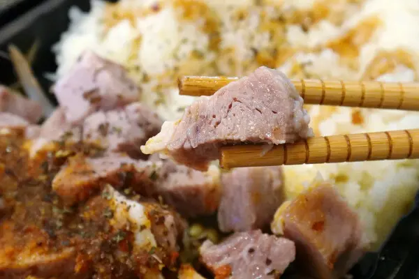 他們的熟成雞肉跟豬肉全部都切成丁狀的超貼心!尤其是我們這種女生,吃飯可以超優雅,不用撕、不用咬一半卡口紅、也不用怕整塊肉掉出來,就算邊聊天邊就算邊聊天邊吃也不會感覺狼狽。