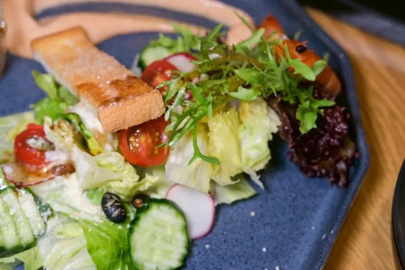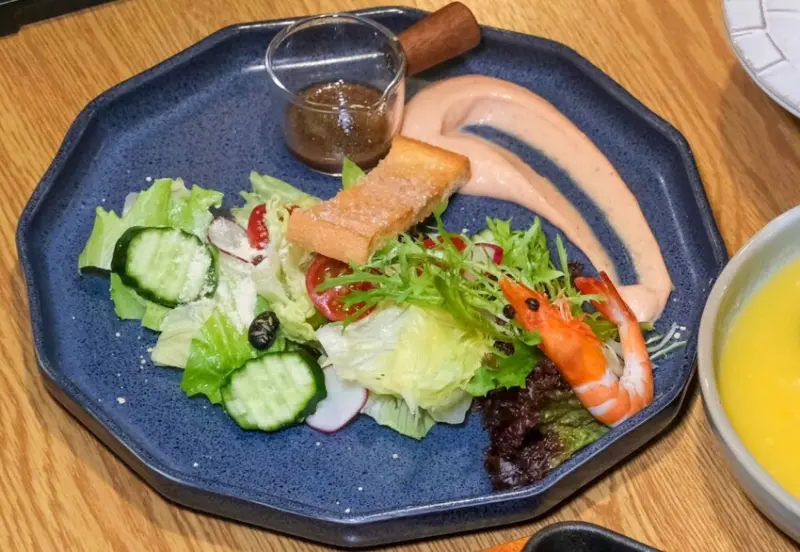 ▼田野碧綠鮮沙拉可以吃得到鮮蝦,超大盤的份量能感受到誠意滿滿~