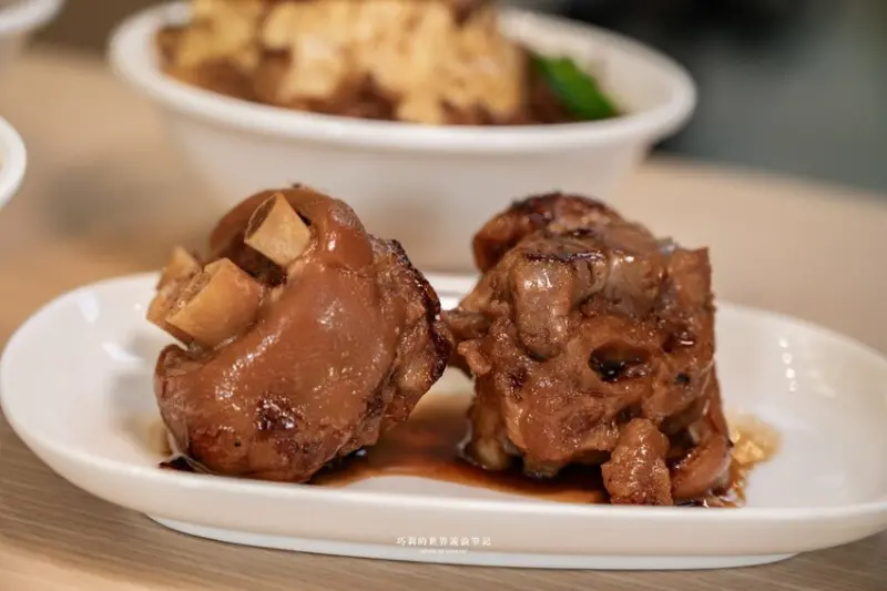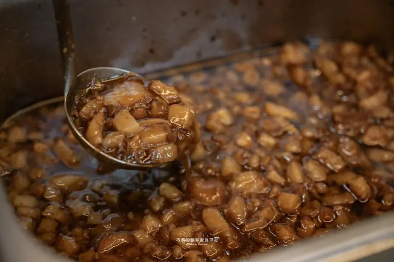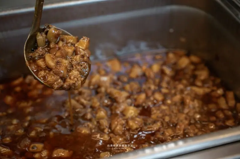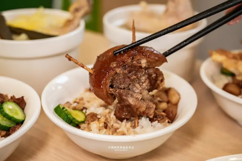 不用特地跑到彰化也能吃到聞名遐邇的爌肉飯,跟著腿庫一起熬煮的蔗香滋味,鹹香帶甜超下飯!