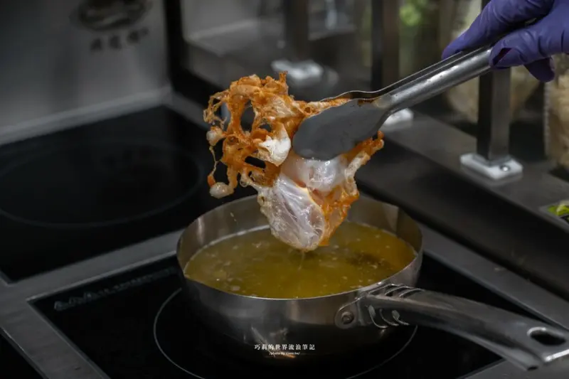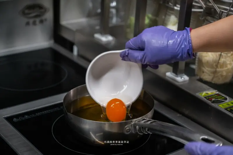 除了必點的蒸蛋青花椒滷肉飯,炸蛋也超讚,選用飽滿的紅仁鴨蛋,油溫控制在180度-200度快速將蛋白炸到邊邊都恰恰的,蛋黃還是半熟好厲害!
