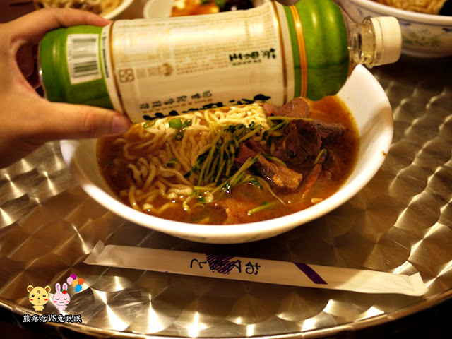 湯頭顏色雖然看起來有些混濁,但其實清澈能見底,而且我很喜歡喝他們的湯頭,有點辣辣的很開胃,很像是金門老爹牛肉麵跟榕榕園牛肉麵的綜合版。
