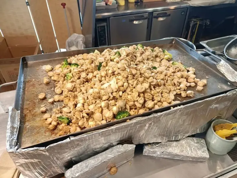 還有、還有這一大盤的鐵板干貝