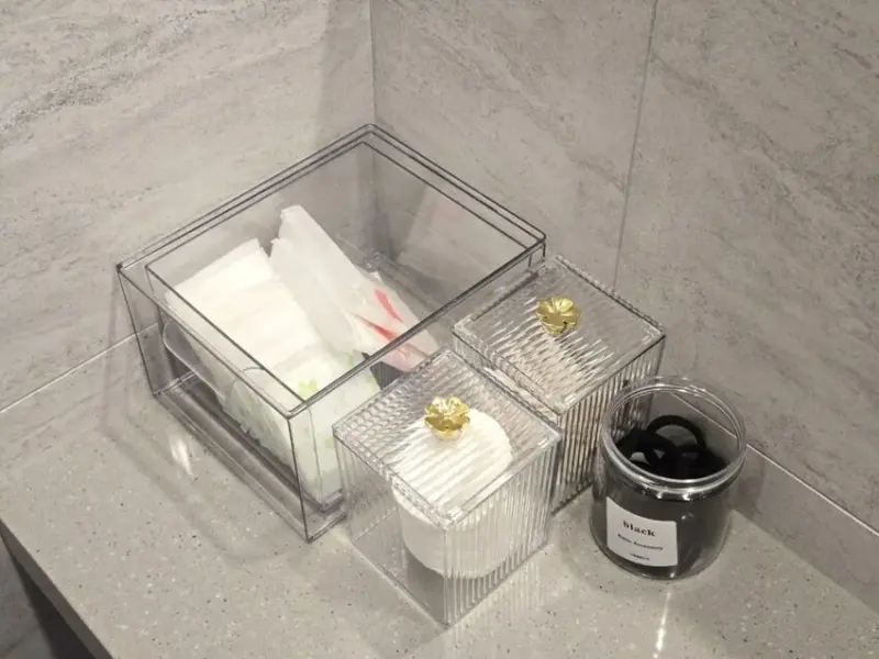 淋浴完,除了基本的吹風機,梳妝台上還準備了各種貼心備品:髮圈、棉花棒、化妝棉,甚至還有衛生棉!