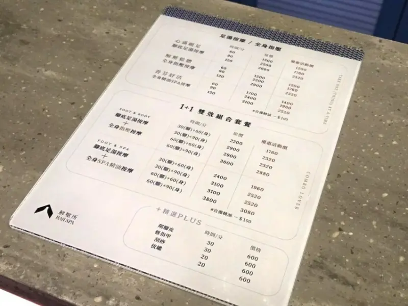 這次和朋友一起預約「腳底足湯按摩+全身SPA精油按摩」的組合。店家有多種方案供大家選擇。