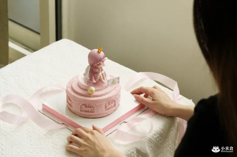 粉萌少女心蛋糕上,靜佇著一只穿戴白淨翅膀的天使女孩,還未開盒就讓人原地融化、雙眼冒愛心~