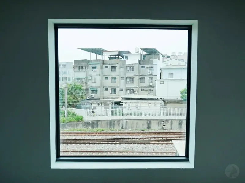 最可愛的是玻璃牆下方還有幾個專為小朋友設計的小視窗,剛好是小孩的視線高度,讓他們也能透過窗戶看到火車經過,完全不需要爸媽抱上抱下,真的很貼心。
