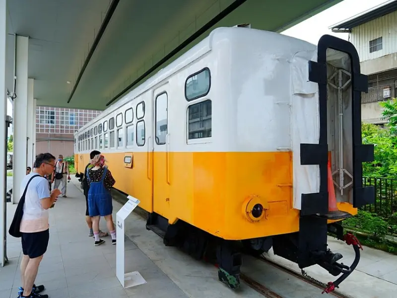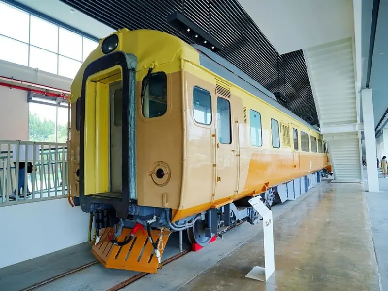 在園區裡還能看到一台非常有東部鐵道代表性的車輛,LTPB1800 型柴客拖車,這台車也被大家暱稱為「黃皮仔車」。展示的這輛 LTPB1813 號拖車,是台鐵於 1961 年自日本東急車輛製造廠引進的無動力拖車**,當時專門在臺東線的 762mm 軌距時代運行。它曾經創下窄軌(762mm)列車時速超過 70 公里的世界紀錄,被全球鐵道迷稱為台灣東部鐵道的傳奇列車。