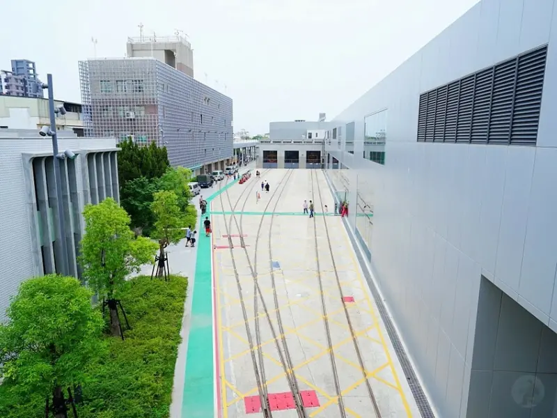 從園區二樓還可以通往列車展示館,沿著連接的戶外ㄇㄠ通廊走過去,視野非常開闊,剛好可以看到苗栗車站月台與火車行駛的畫面。有時候剛好碰上列車呼嘯而過,那種震撼的感覺真的很酷!