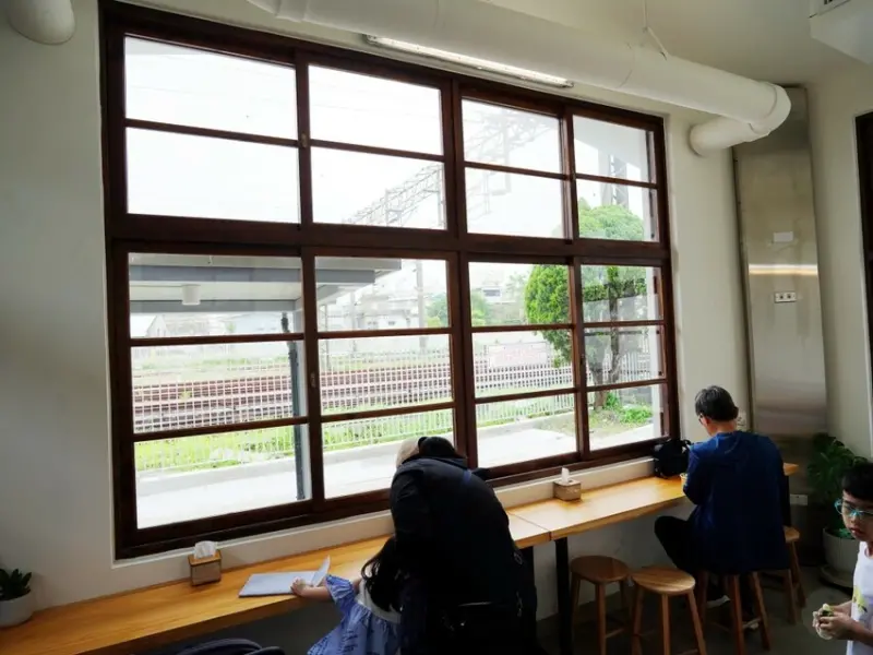 不過當你走到另一個火車頭展場的二樓時,會發現這裡的設計就貼心多了!一整面大片透明玻璃窗直接對著鐵道,無論是看火車、欣賞風景,還是拍照打卡都超級適合。