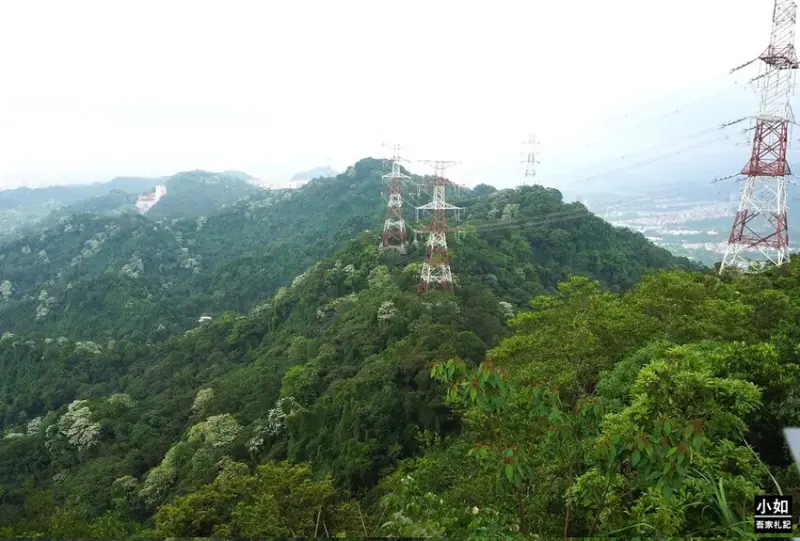 天上山這有觀景台可以看遠處山巒上的桐花景色,