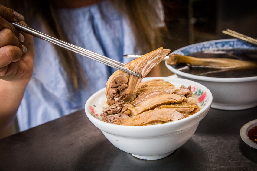 來這裡,大推一定要點的就是鴨肉片飯啦!這家店上菜速度根本是神等級的快,點完餐大概10分鐘內就全部到齊了,快到我都嚇一跳!鴨肉片飯果真名不虛傳,白飯上頭鋪滿了去骨的鴨肉片。