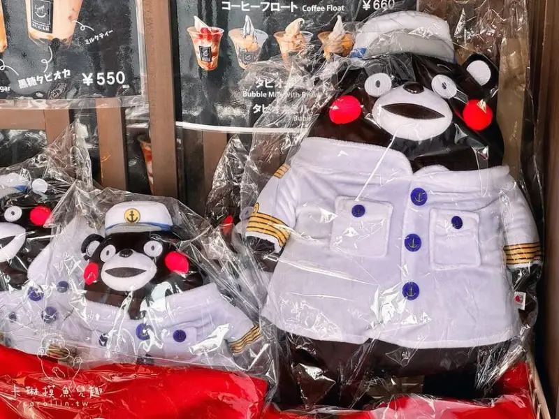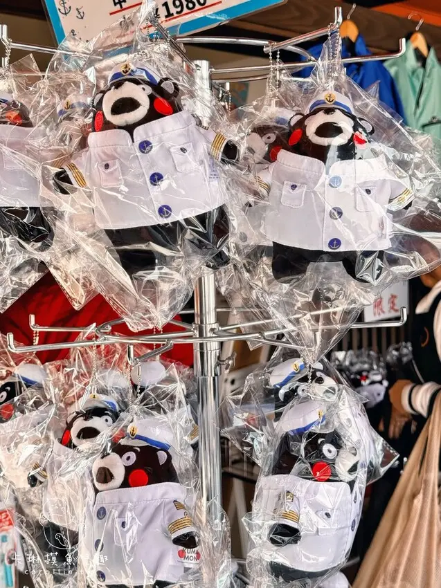 這邊也有許多紀念品土產店,賣的東西和城彩院有點不同,而且有穿著船長服的多熊本熊玩偶耶!