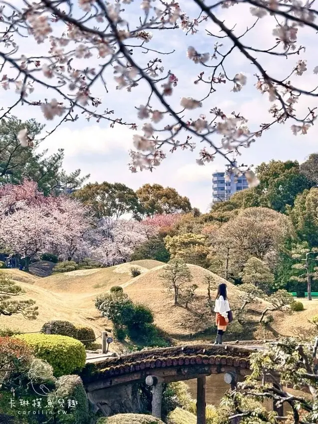 庭園佔地雖不算大,但步道蜿蜒、佈局精巧,處處可見浮石、草坪、松樹與日式橋梁,還有一座象徵富士山的小丘,非常適合散步與拍照。