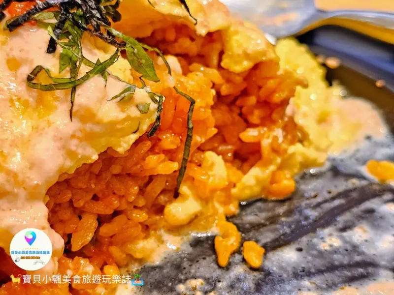 蛋皮包裹著鹹香的蛋炒飯,每一口都能感受到明太子的濃郁風味。