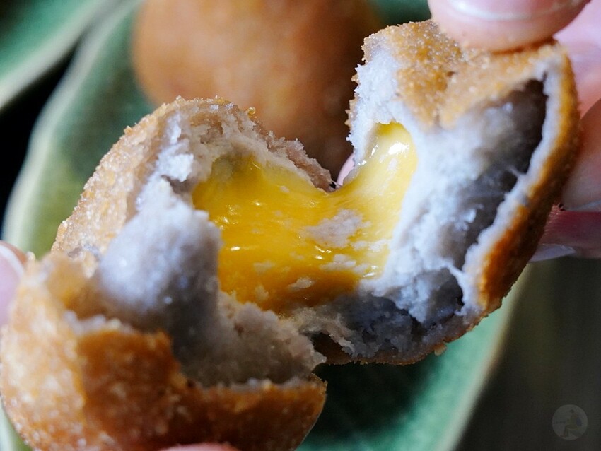 熔岩起司芋泥球絕對是鹹甜控的最愛!綿密的芋泥包裹著會牽絲的起司,鹹甜交錯的口感超級療癒~旅咖本身就很愛芋頭產品,這道一吃就愛上!外酥內軟,濃郁卻不膩口,喜歡芋頭或起司的朋友一定也會很喜歡。