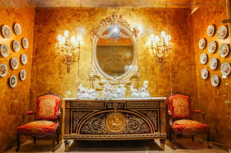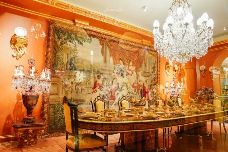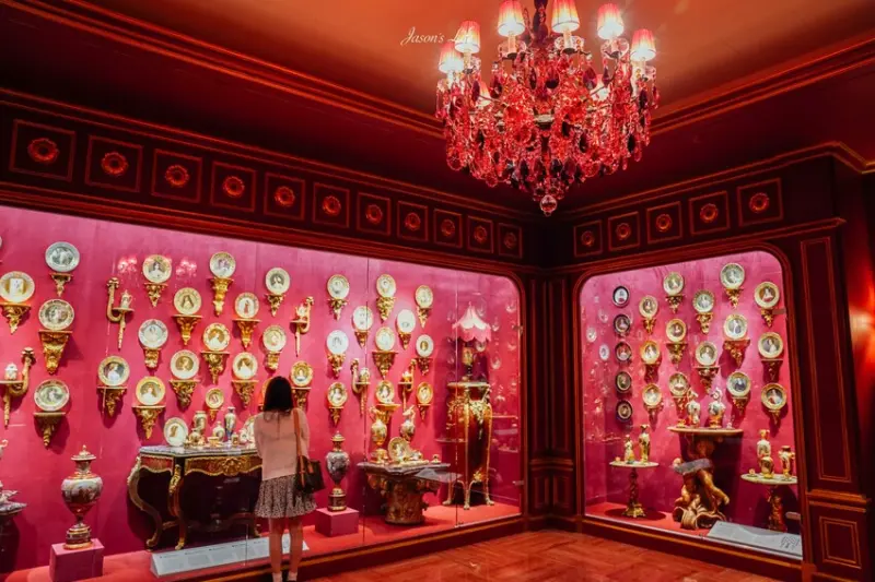 廊道的左右兩邊,都擺放著大型的瓷器作品,讓你慢慢欣賞。甚至,你還能看到歐洲皇室吃飯的餐廳佈置,整個就是奢華輝煌到了一個極致,保證讓你看到傻眼。