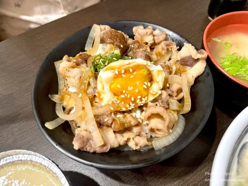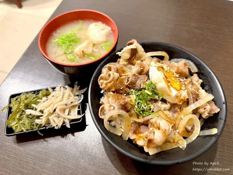 牛丼看起來超誘人,上面還有半顆半熟蛋耶。牛肉配上洋蔥,那個鹹鹹甜甜的滋味真的很讚,而且份量也不少喔。不得不說,這個老學校牛丼光看就很有食慾,特別是那個半熟蛋,看起來有夠讚的啦。